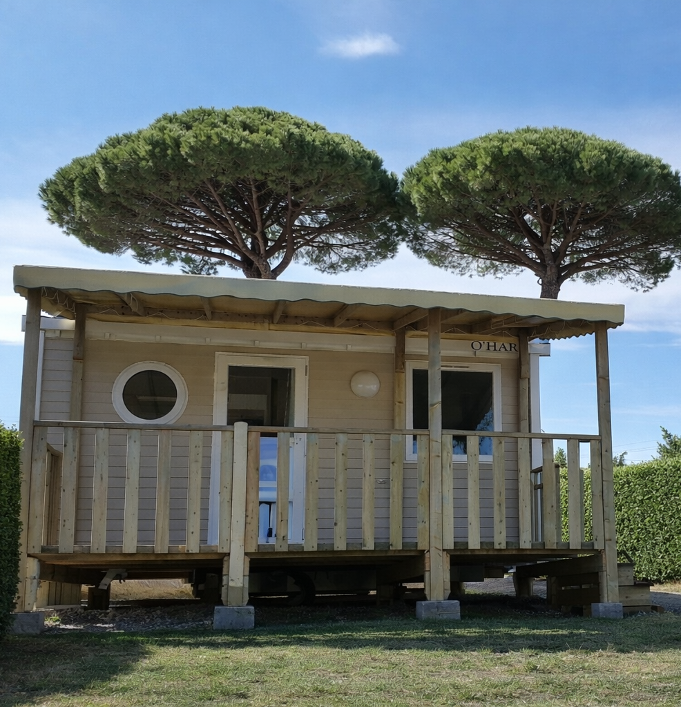 Mobil-home situé sur les hauteurs du camping.